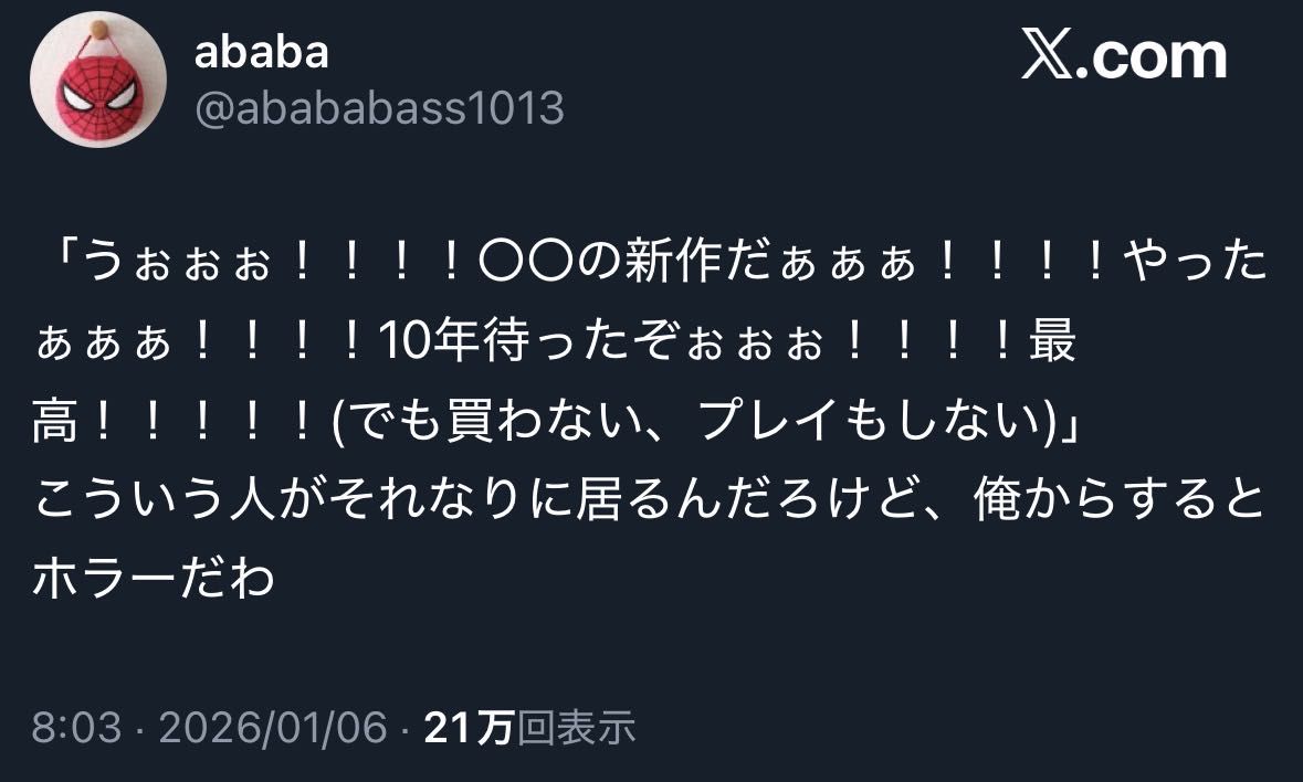 新作だうわあああのスレには参加するけど
